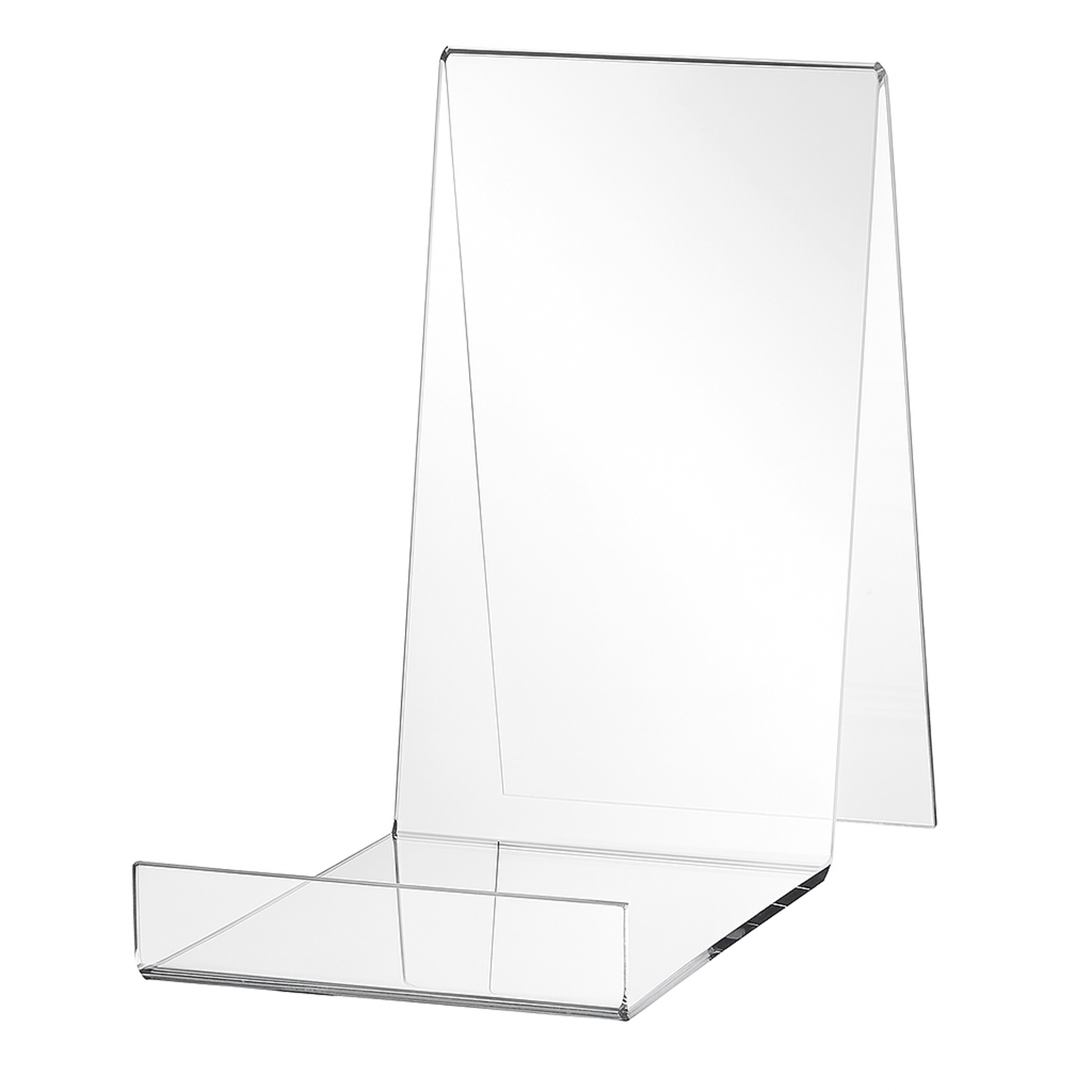 Universal akryl varestøtte produsert av 3,0 mm glassklar akryl med polerte kanter.
