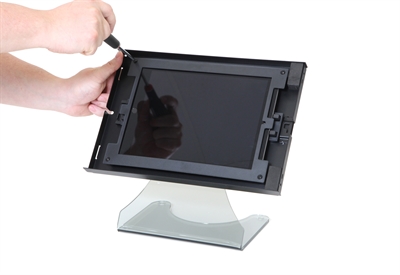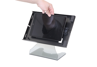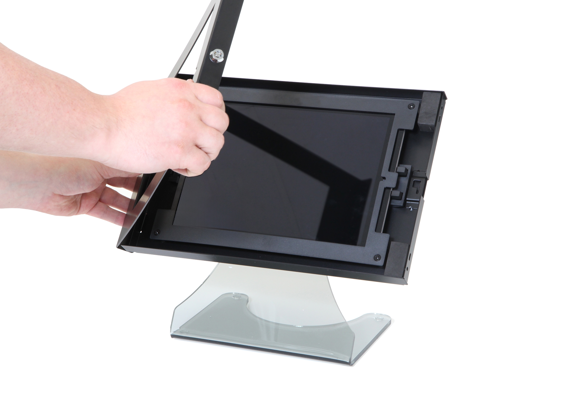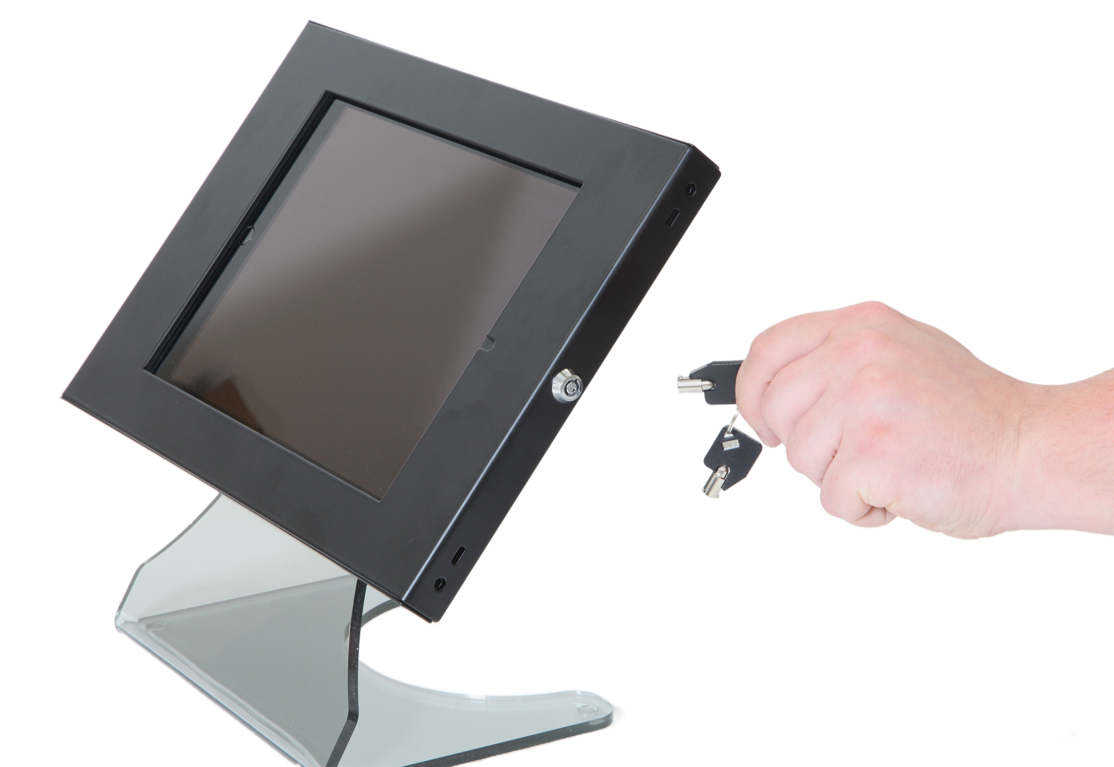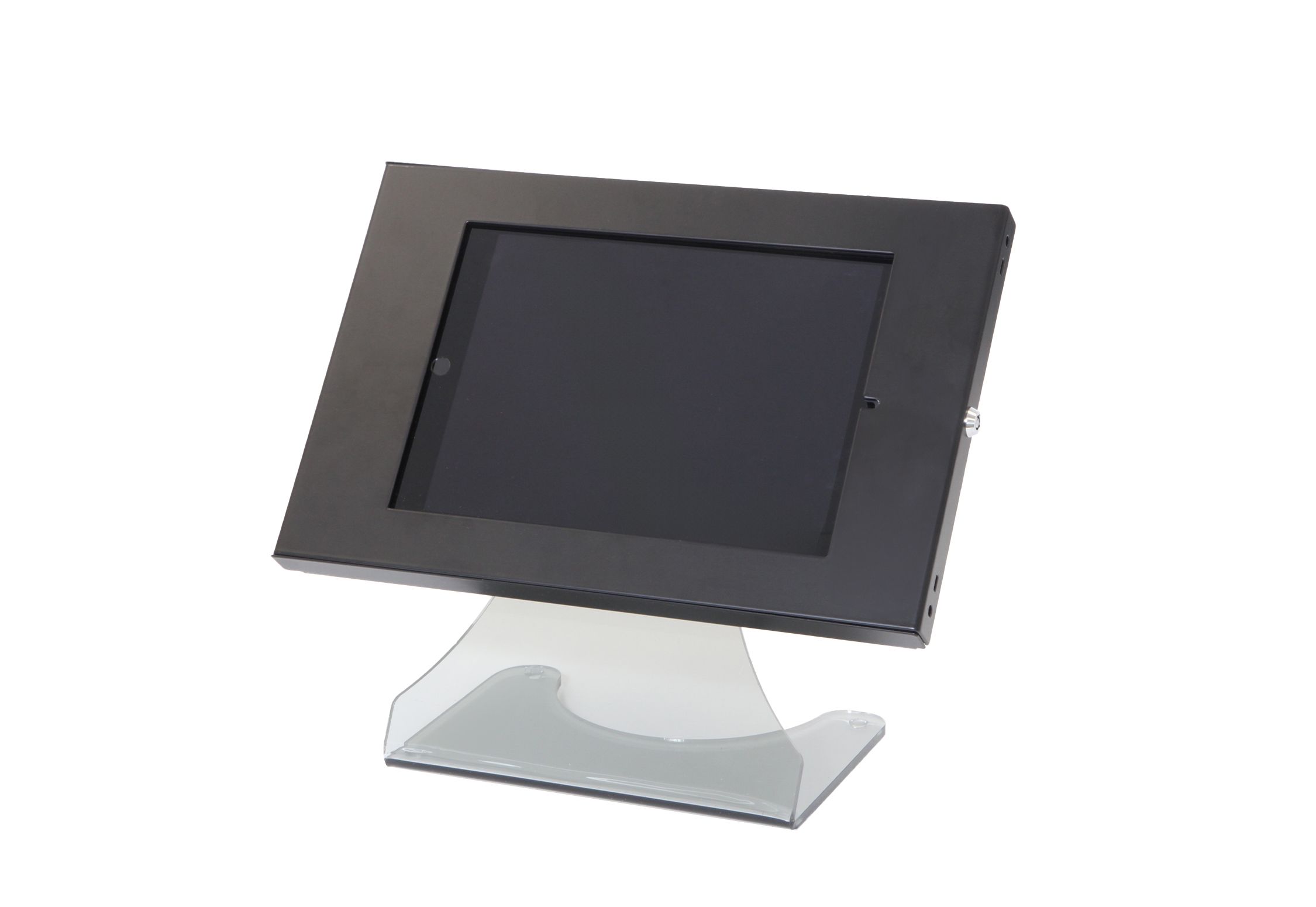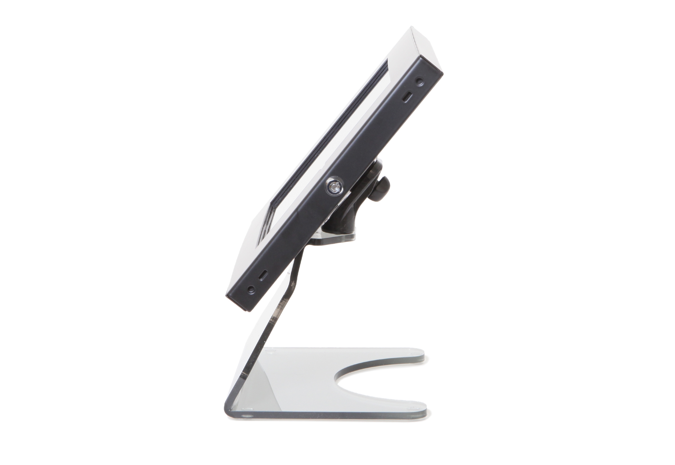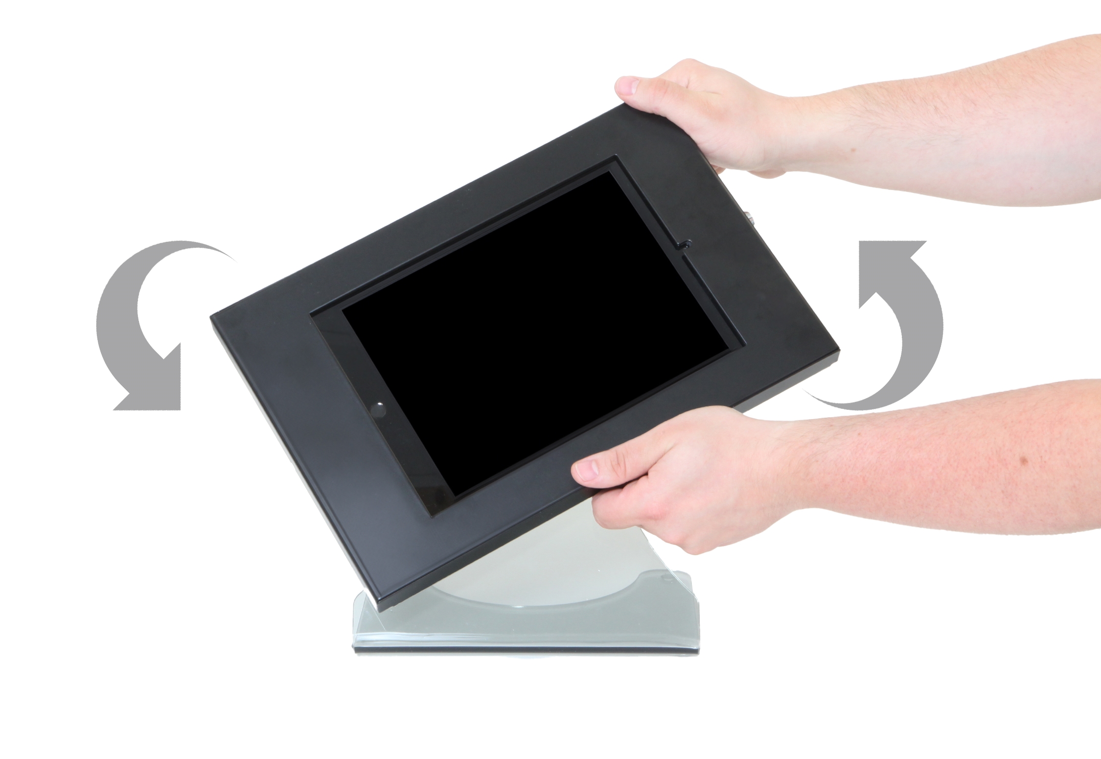 Låsbart og roterbart bordstativ til tablets, velegnet til bruk i offentlige miljøer. Dette universelle nettbrettstativet leveres med 6 forskjellige fronter/paneler som gjør at alle de mest populære nettbrettene og iPads passer perfekt i stativholderen.