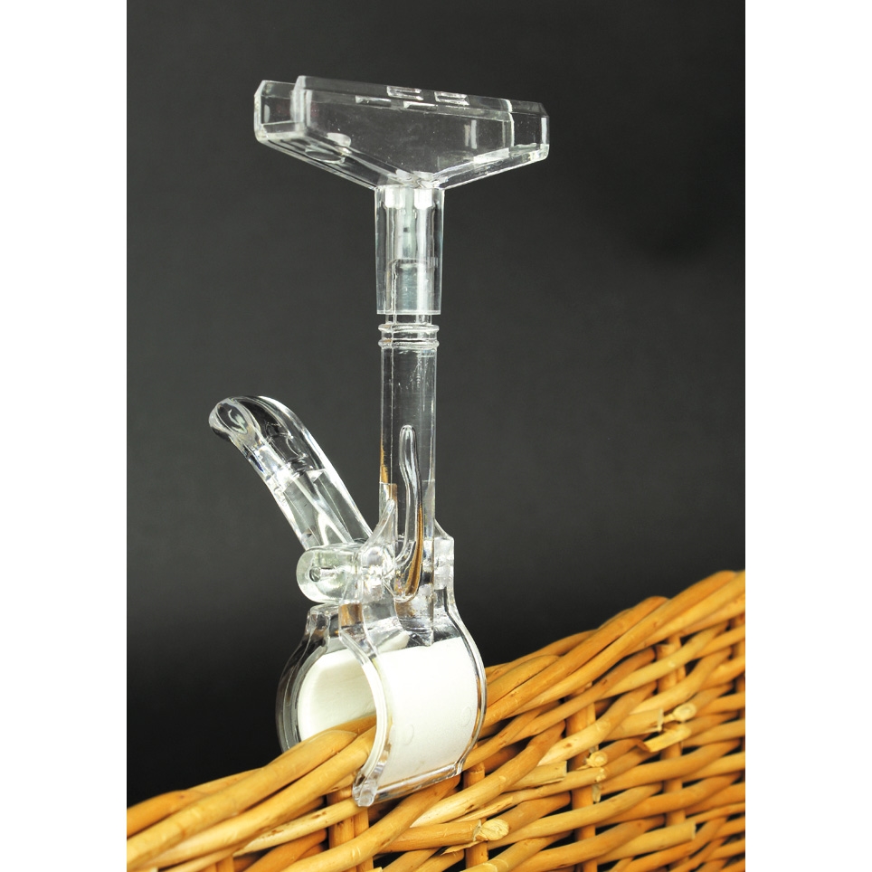 Universalklemme montert med 70mm klar T-holder som passer til alle SKILTEX plastrammer.