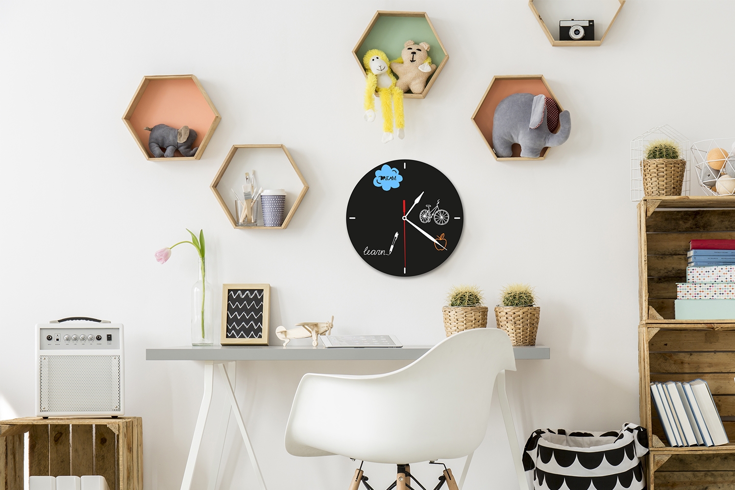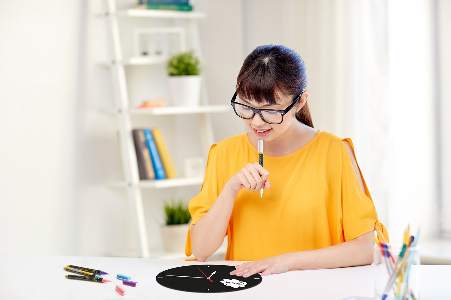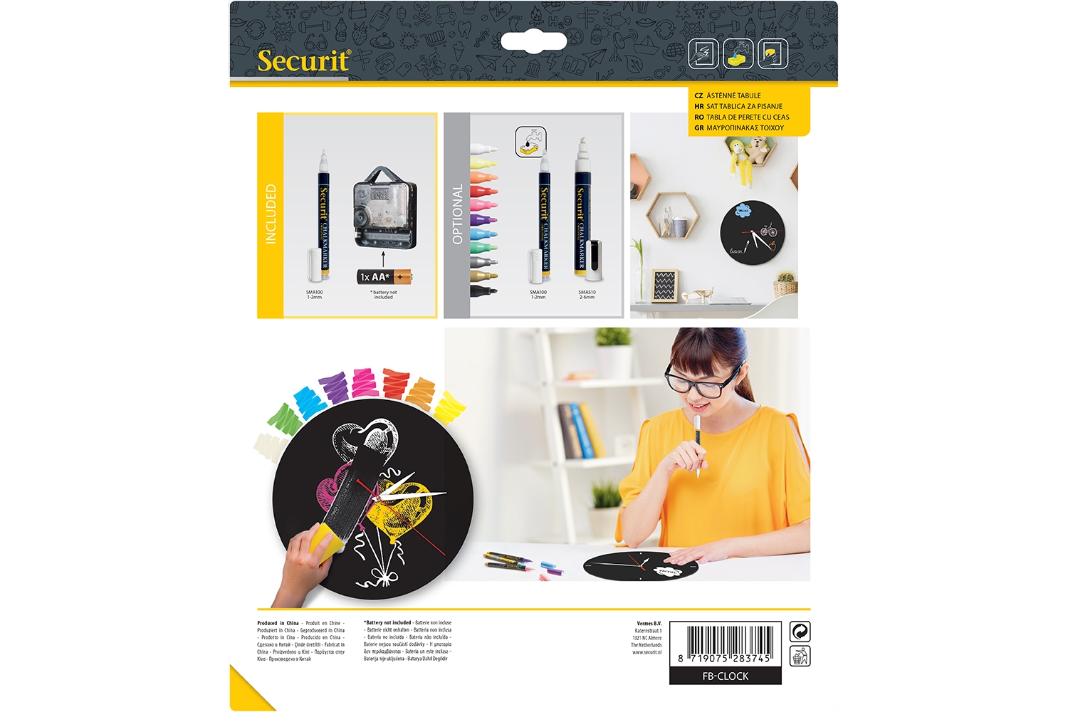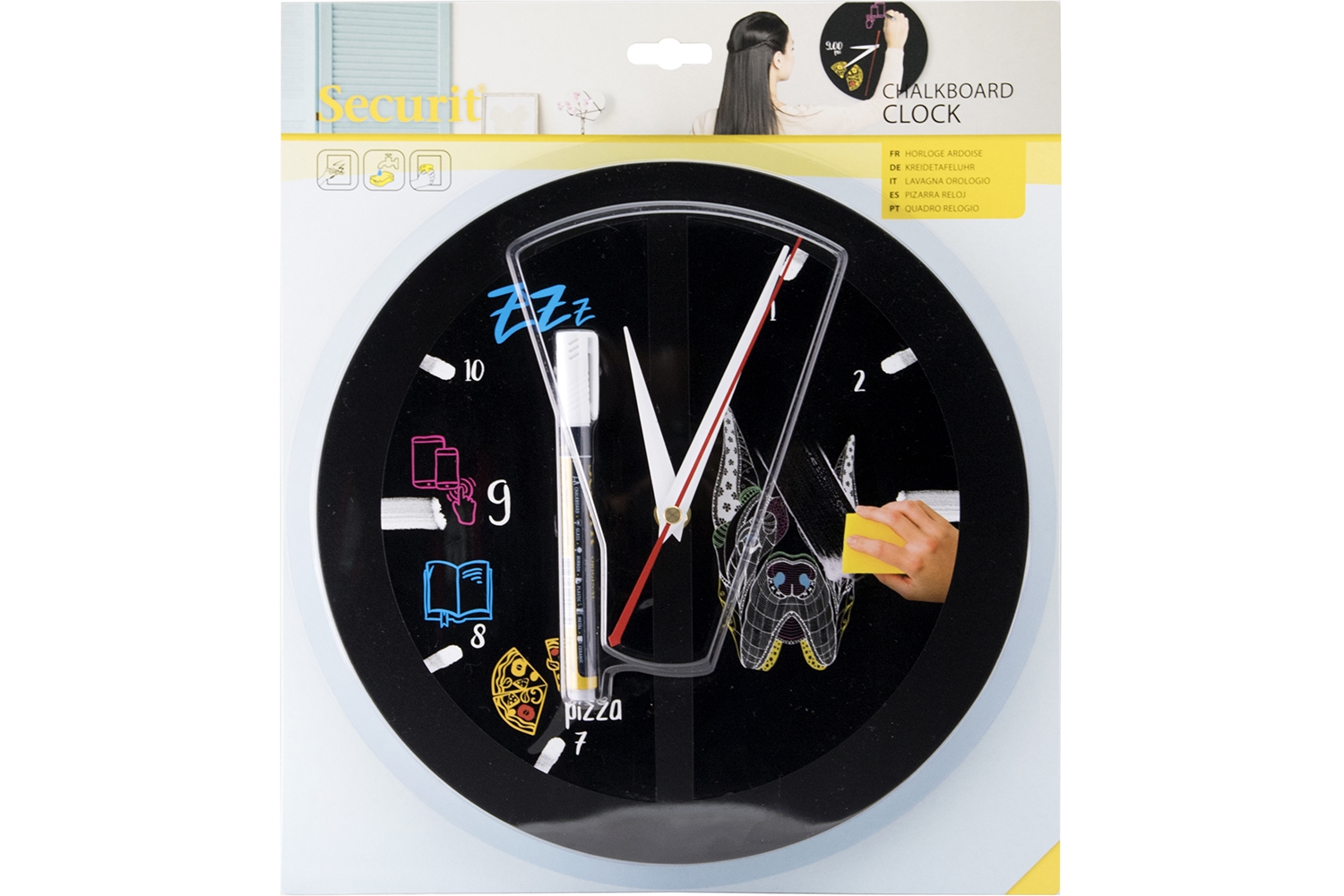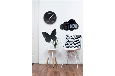 Skap selv din egen design og få et kreativt overblikk over din dagligdag med dette Ur Silhuett tavleskilt til vegg. Tavleskiltet har innbygget funksjonelt urverk, batterier ikke indkludert. Klebemidler til veggmontering, samt 1 stk hvit krittmarker penn (1-2mm) inkludert.