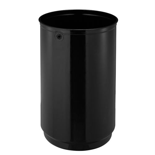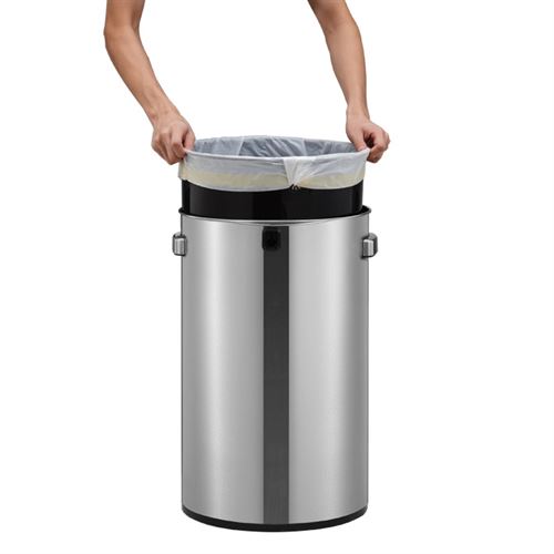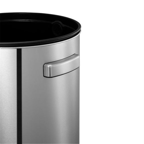 Stilfull åpen topp søppelbøtte laget av børstet rustfritt stål med fingeravtrykks sikker coating.