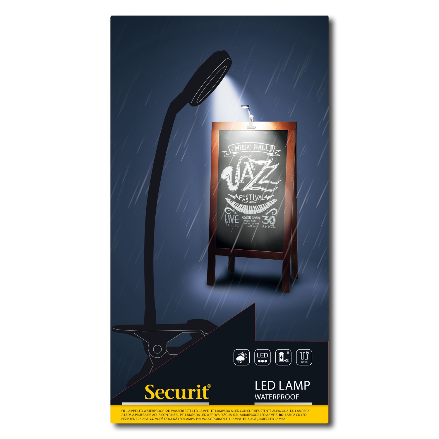 Gjør din gatebukk / A-skilt synlig i mørket med denne super smarte vannsikre LED lampe med 5m kabel, som settes fast i toppen av din skilt med en stor kraftig klemme.