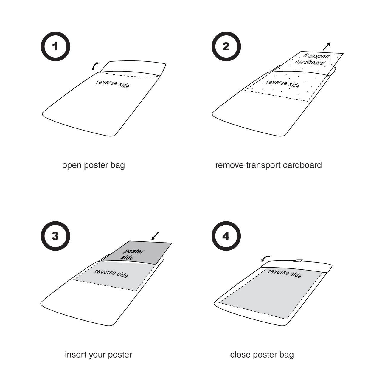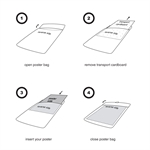 Plakatlommene lukkes tett rundt plakatene og er selvklebende, slik at også vanlige (billigere) plakater kan brukes i utendørs skilt og rammer.