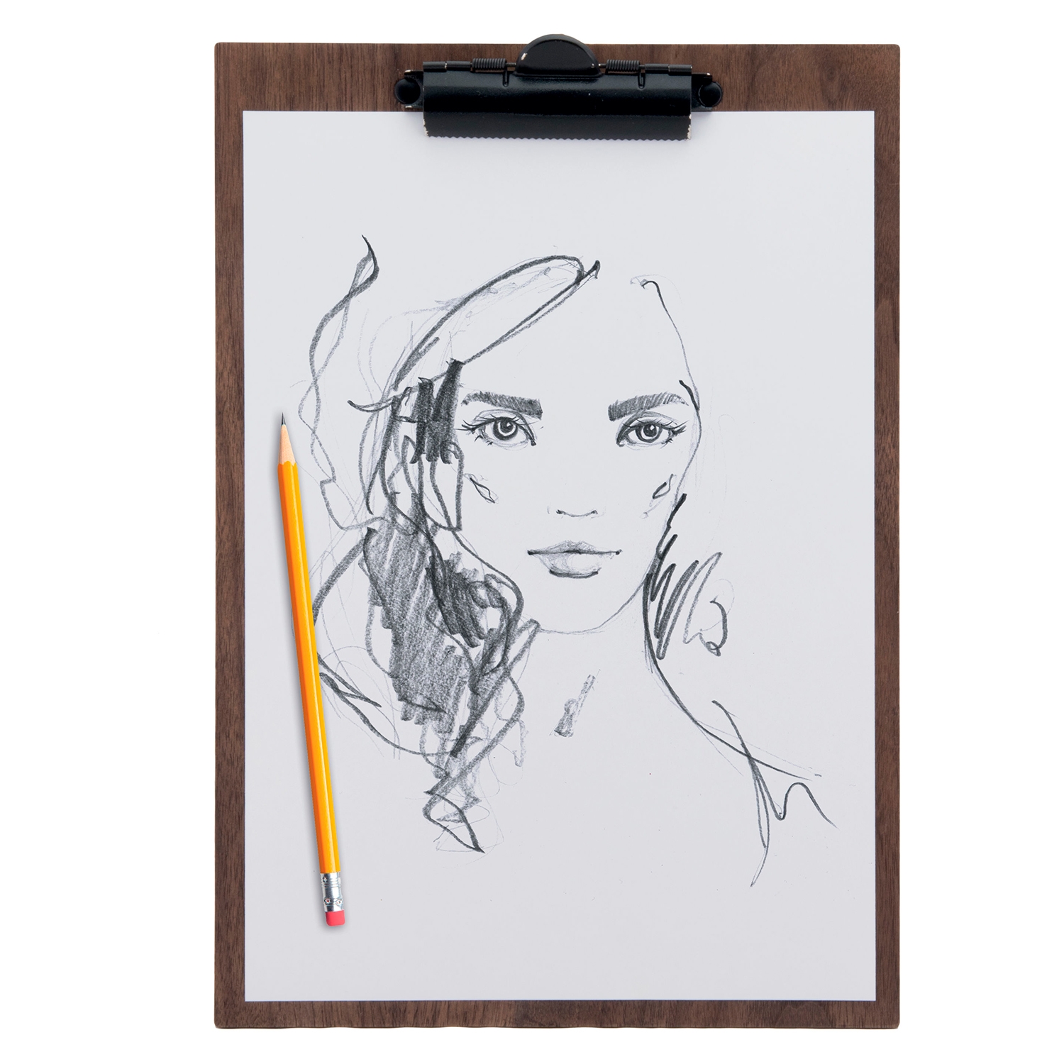 Skriveplaten er utstyrt med en kraftig klemme i attraktivt, sort metall øverst, som holder papiret på plass.