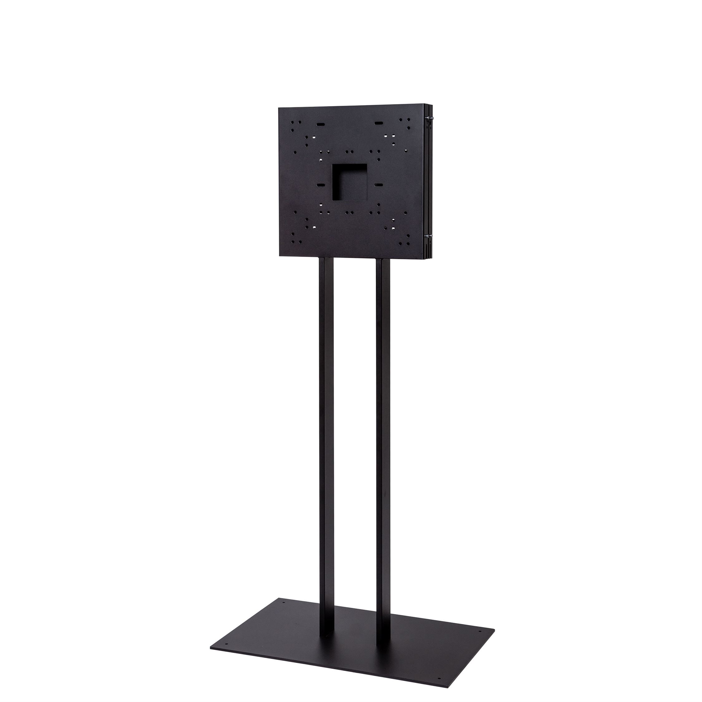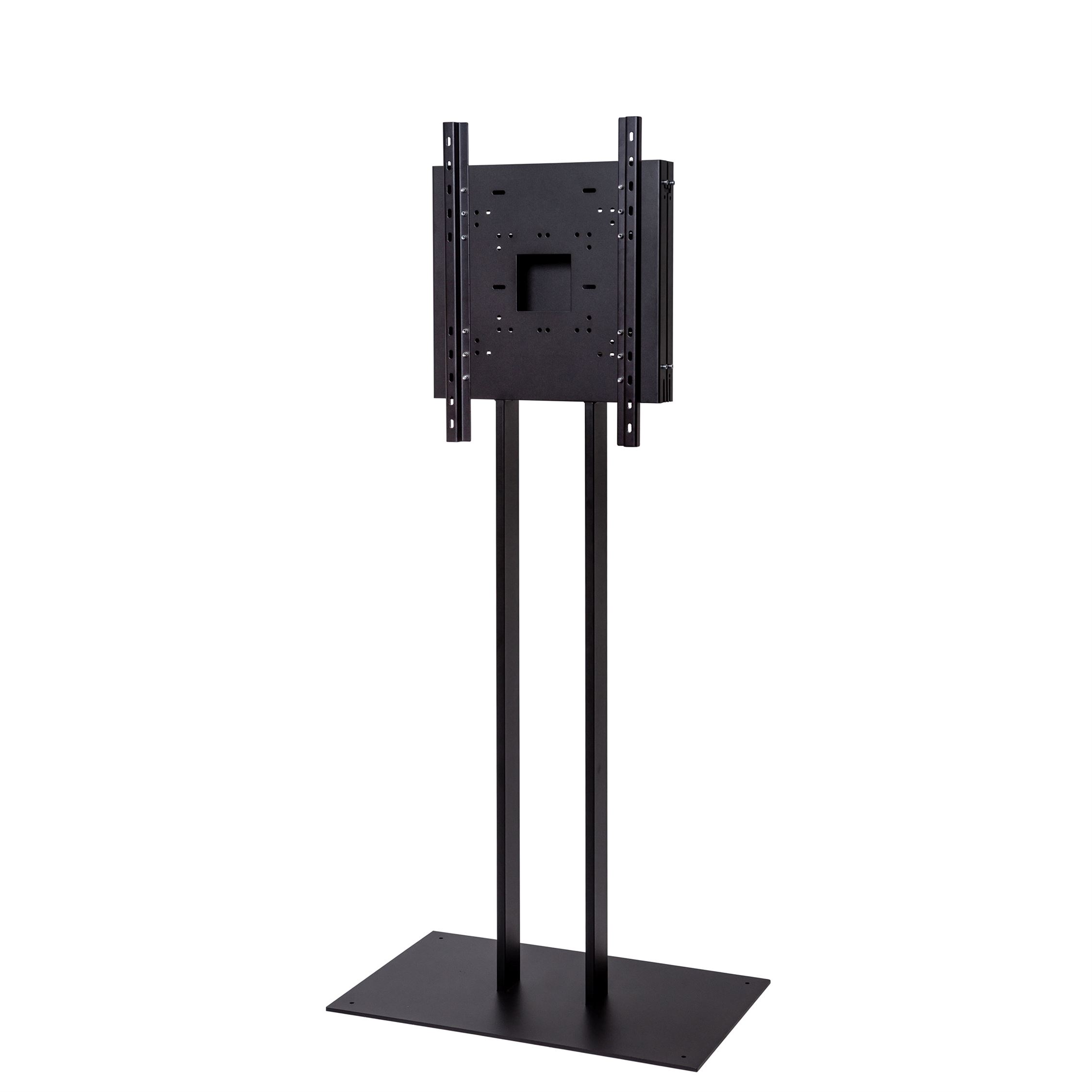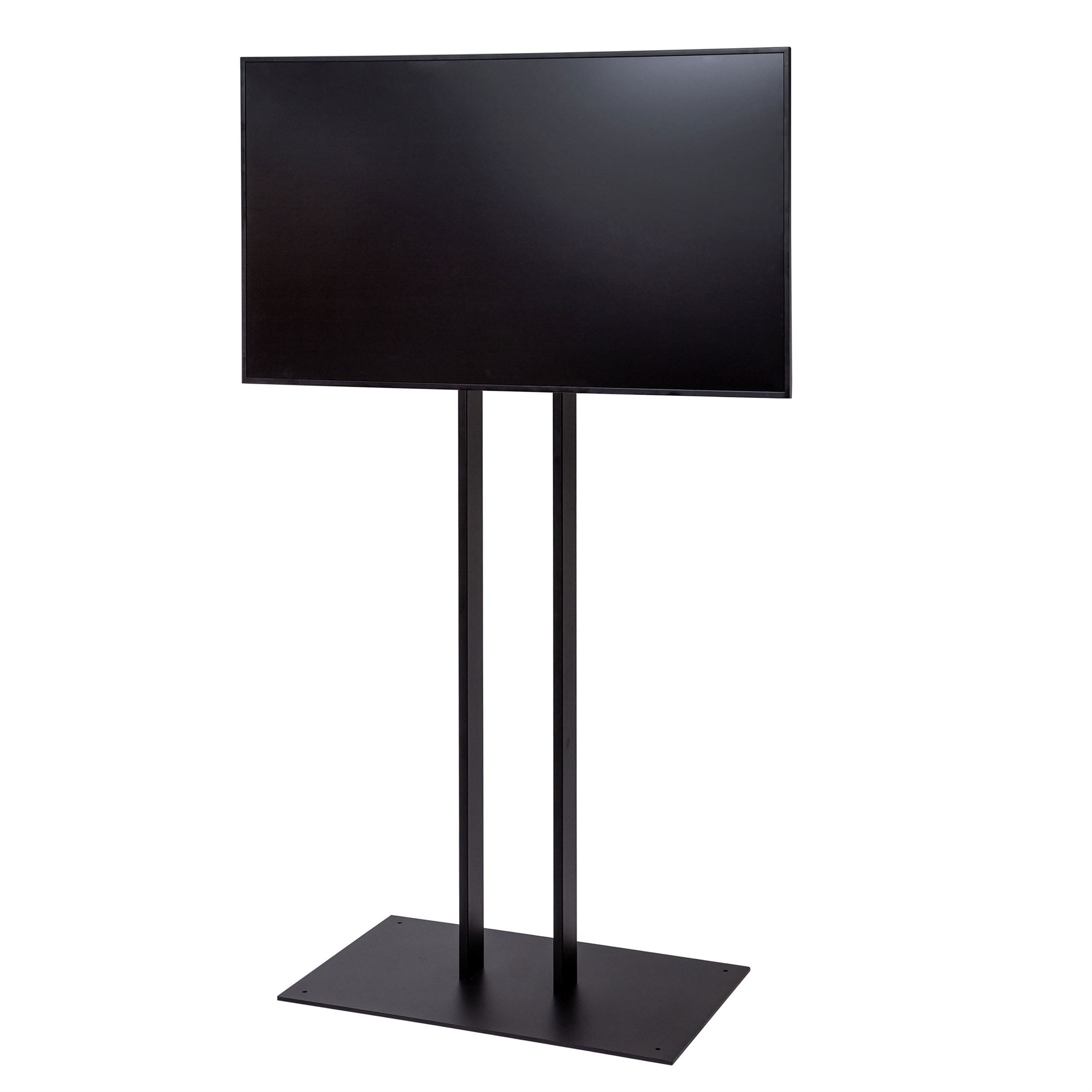 WATCHTOWER TV Stand i svart pulverlakkert stål, med universell VESA Beslag, og tung stabil 8 mm metall fot.