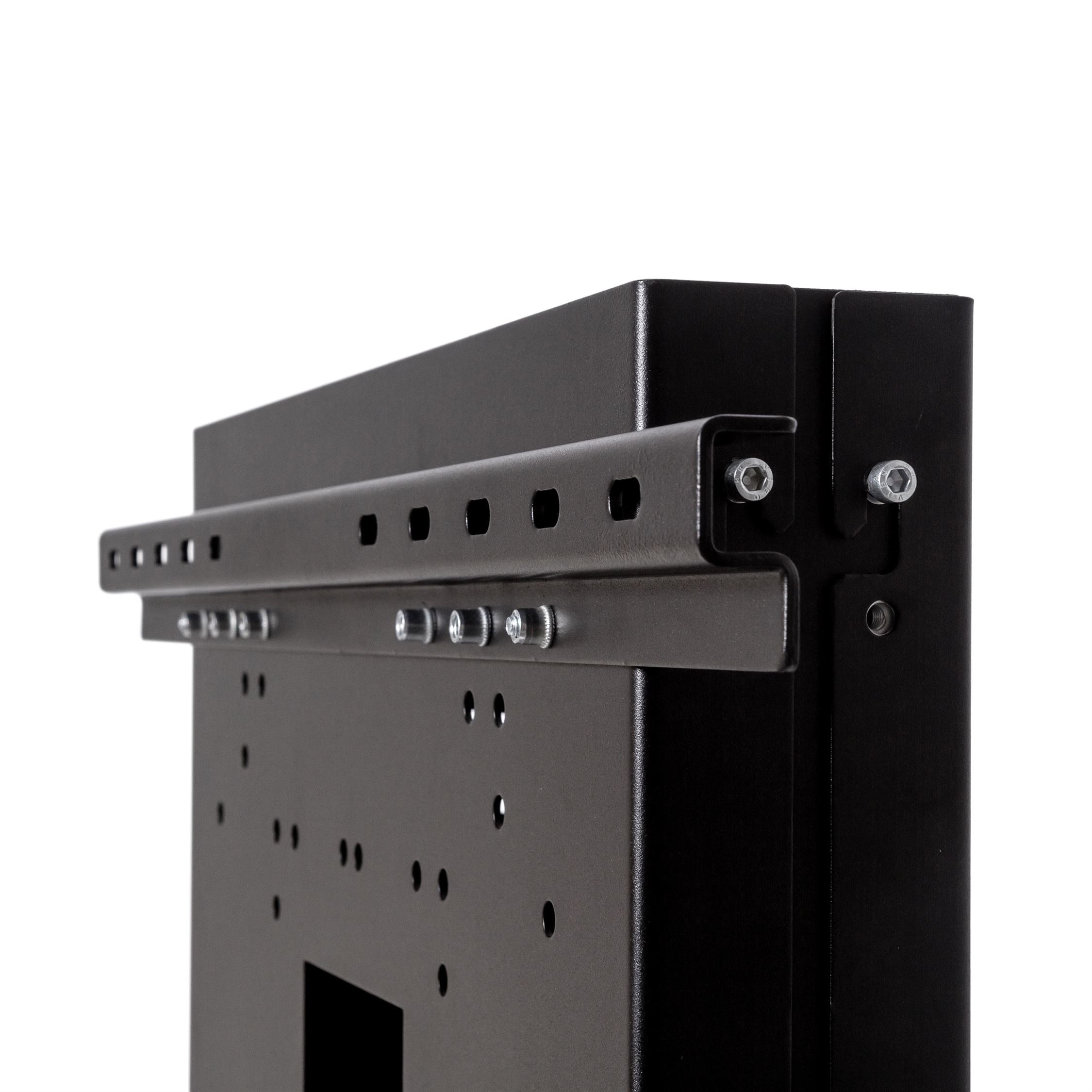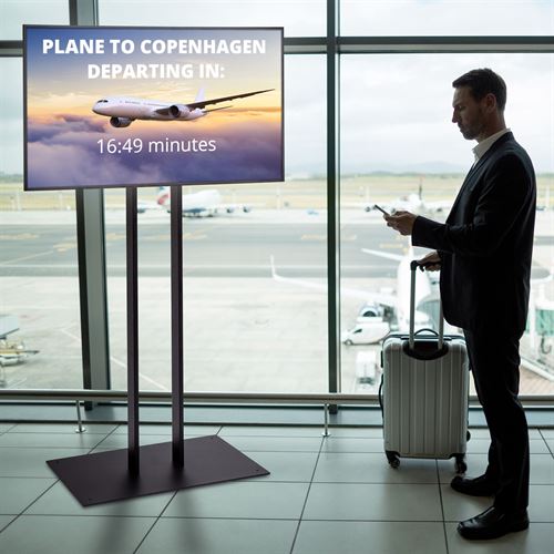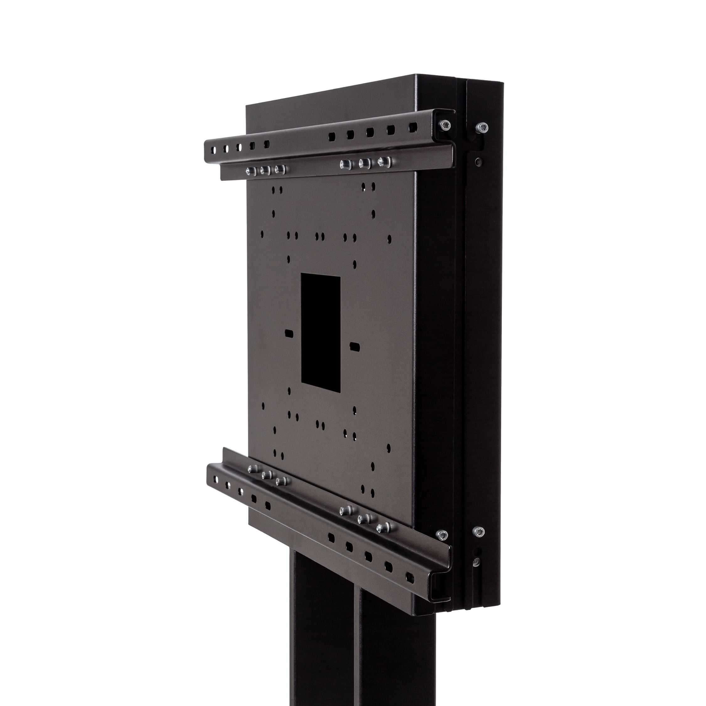Dette TV stativ kommer med universell VESA standard beslag på opp til 600x400 mm, hvilket gjør den kompatibel med selv 85" flatskjermer og som i sammenheng med profesjonell presentasjon gir mulighet for horisontal og vertikal visning av de ønskede budskapen, informasjon og produktkampanjer. Beslagets bakside har ventilasjonshull, som sørger for at den monterede skjermen ikke overhettes.