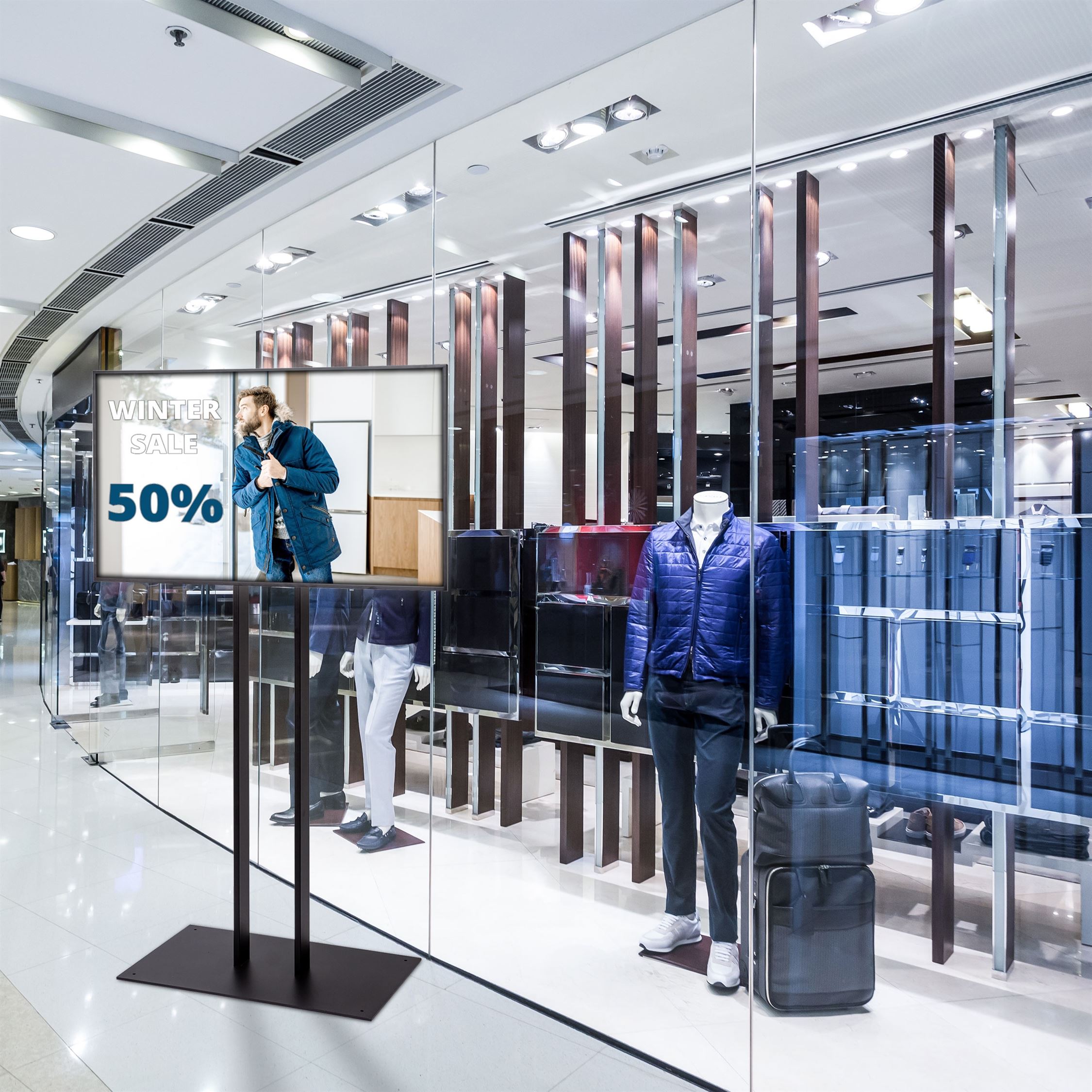 Ideel til profesjonelle presentasjoner i vindusfront, detaljhandel, kontor, lufthavn og andre offentlige rom.