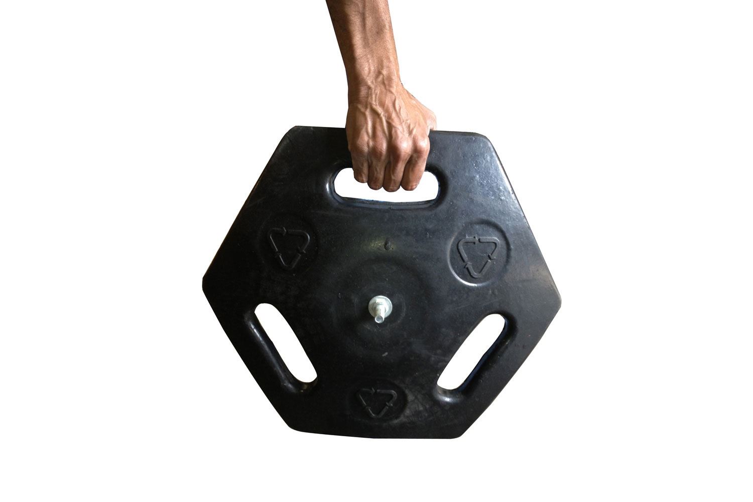 Foten har praktiske bærehåndtag og er kraftigt nok til at den kan klare at bli kjørt over av en alm. truck!
