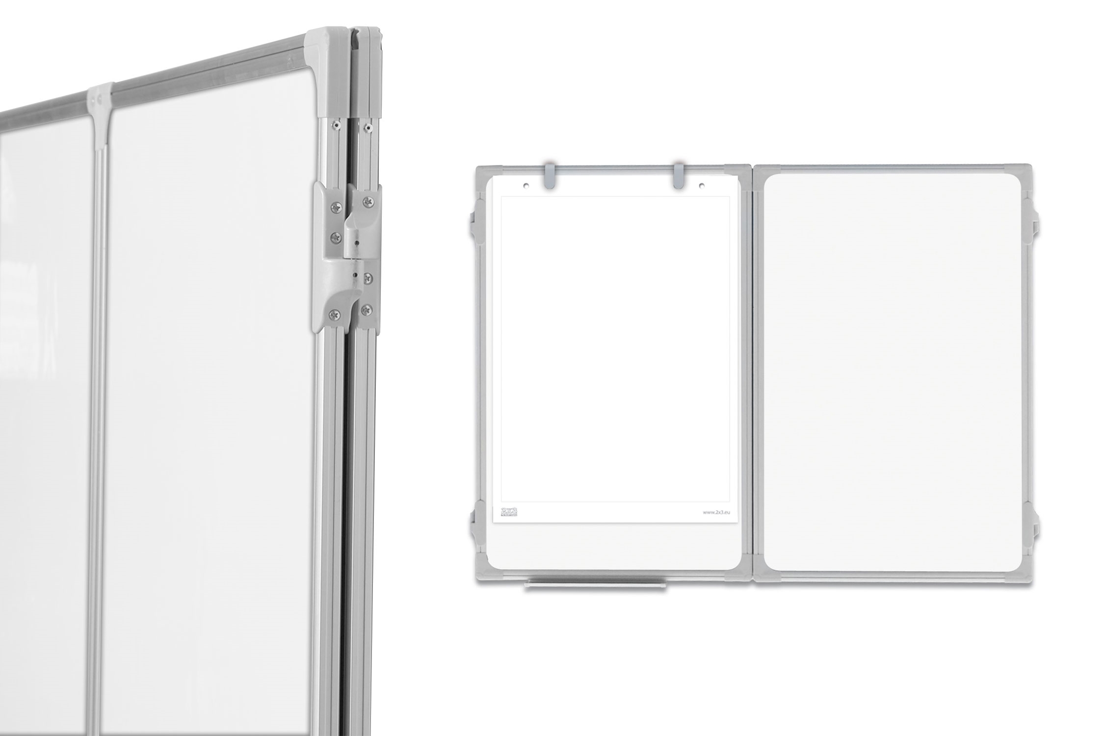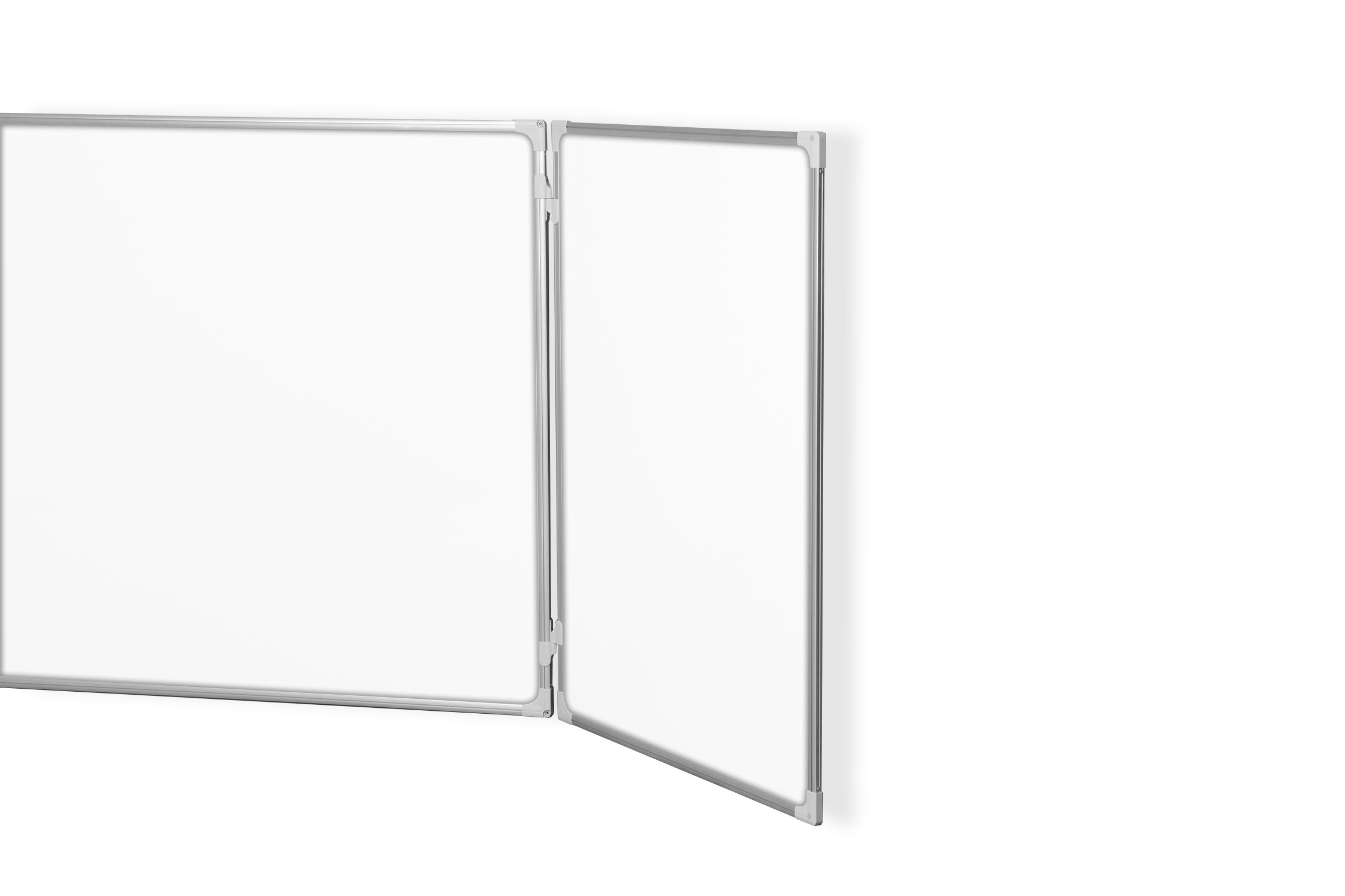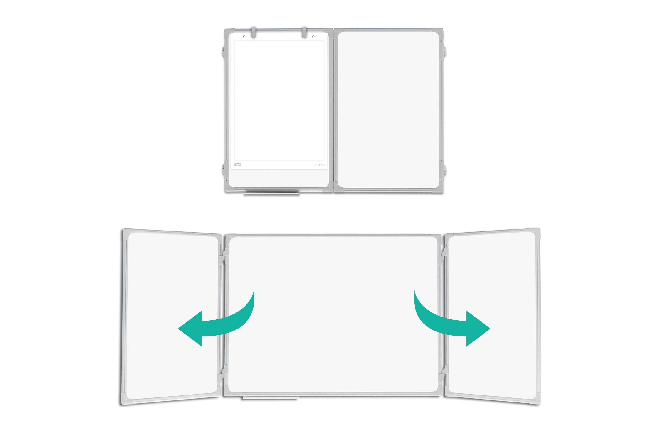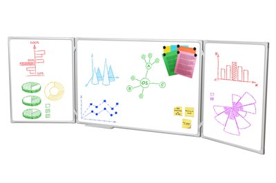 Denne kompakte whiteboard har 2 hengslede whiteboard paneler som samlet gir 5 magnetiske skriveoverflater.
