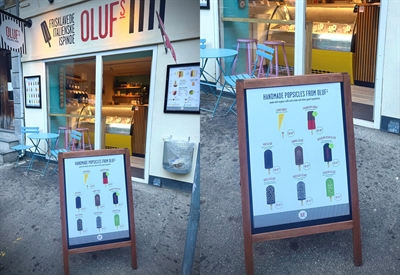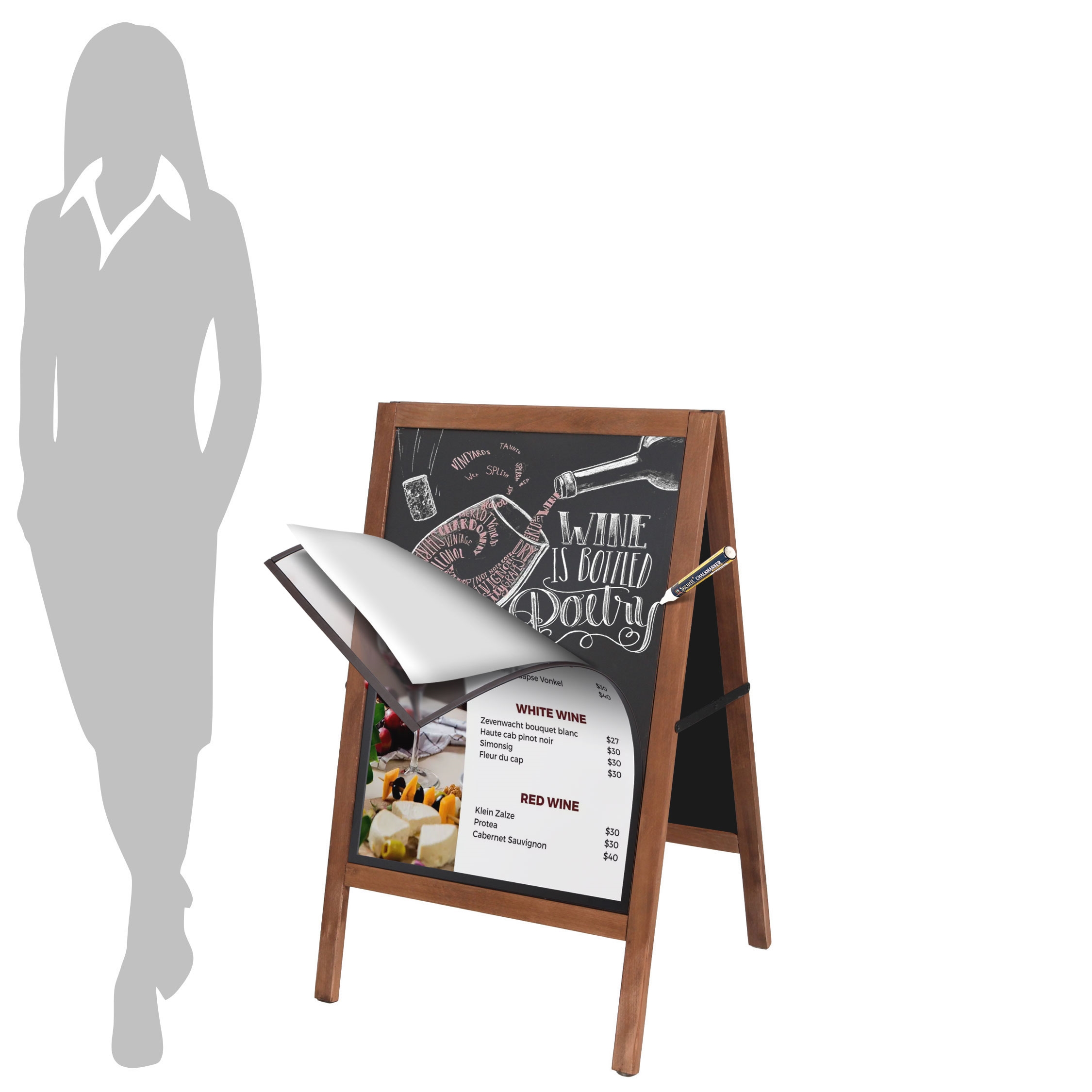 Denne fantastiske, allsidige gatebukken kan brukes både som en tradisjonell gatebukk med 50x70 cm plakater eller som et krittavleskilt som kan skrives på med kritt eller krittusjer.