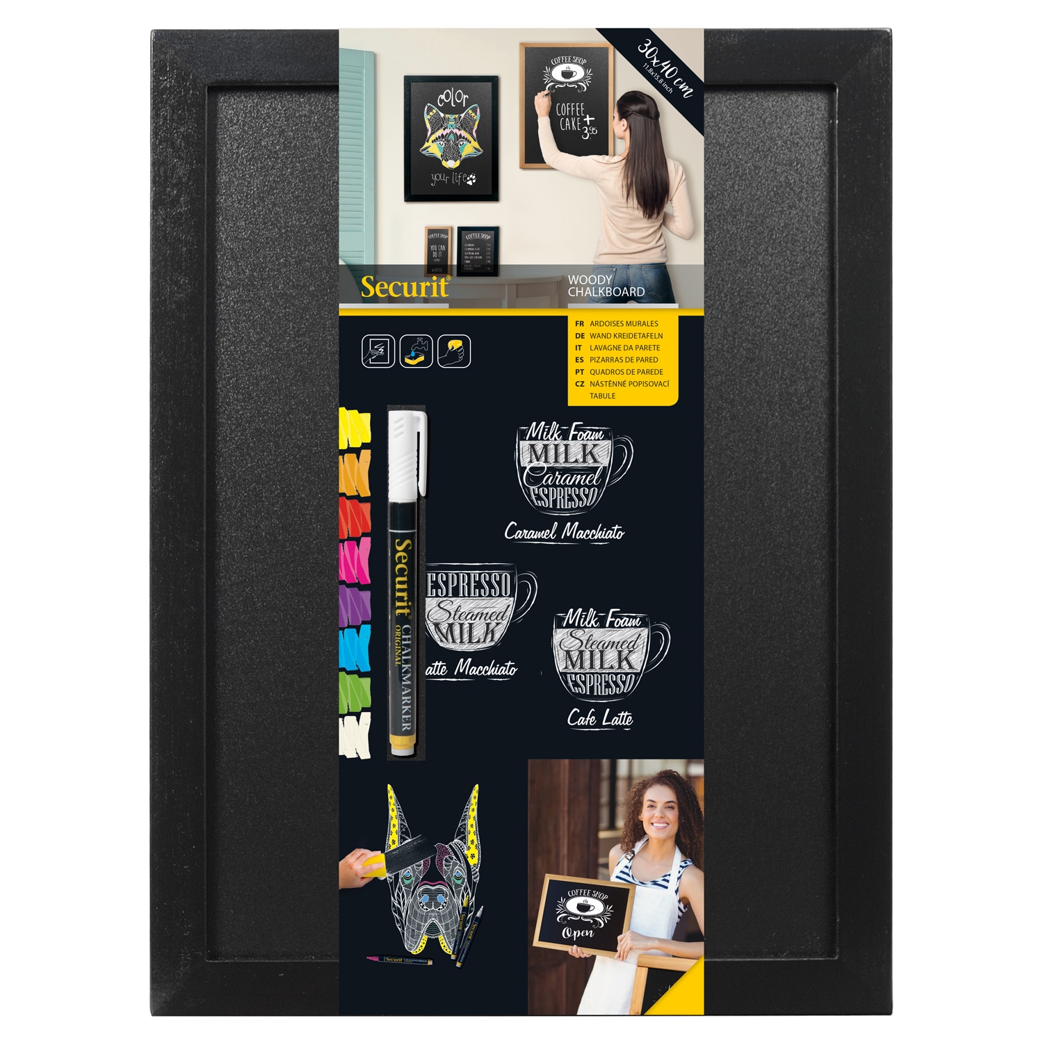 Securit kritt tavler av topp kvalitet produsert i en sterk trekonstruksjon og utstyrt med en dobbelsidig skriveflate.