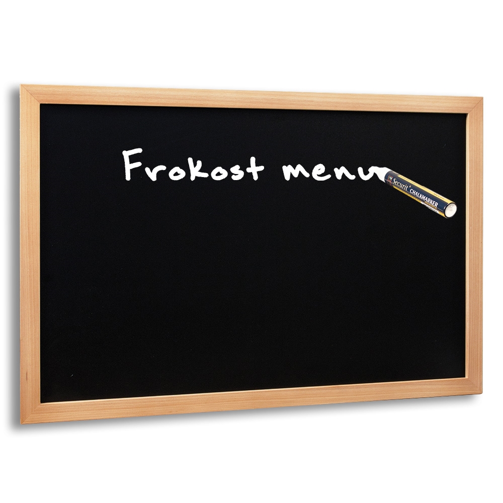 Securit teak-look kritt tavler produsert i en sterk trekonstruksjon (MDF) og utstyrt med en dobbelsidig skriveflate.