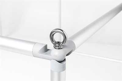 Det lette, elastiske stoffbanneret trekkes enkelt ned over aluminiumsrammen på noen sekunder, og lukkes i bunnen med glidelås (Zipper).
