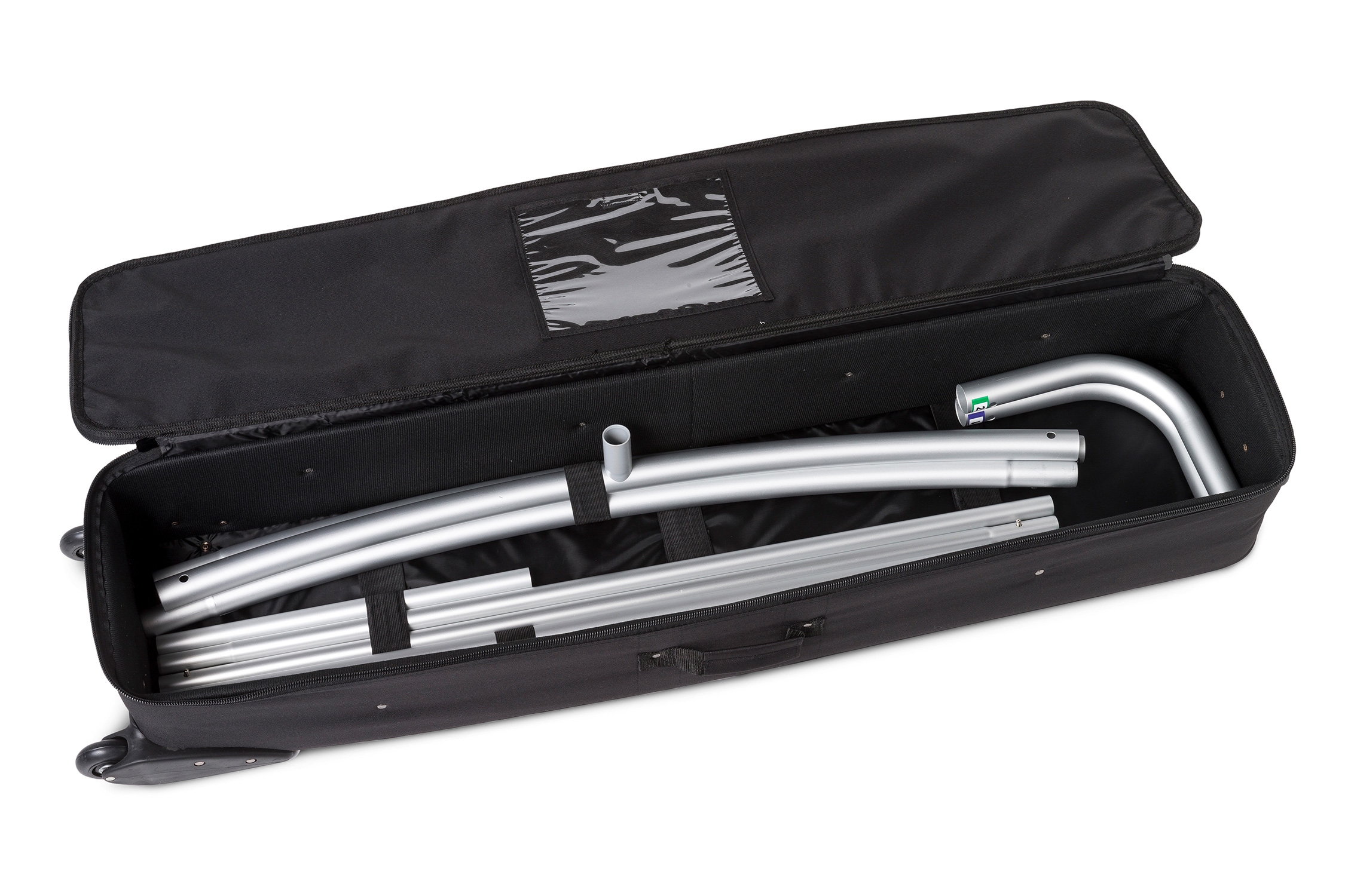 Zipper walls leveres i en luksus bæretaske / trillekoffert med hjul, som gjør det enkelt å transportere og oppbevare. En enorm fordel med Zipper walls er at de tar opp minimalt med plass når de ikke er i bruk.