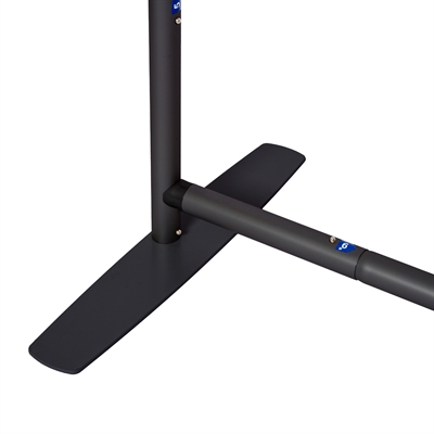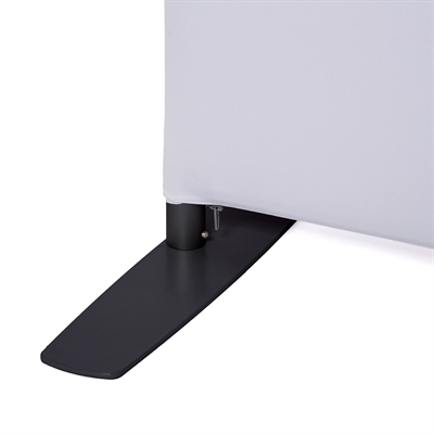 Zipper Walls er raske og enkle å montere takket være den lette aluminiums­konstruksjonen. Denne versjonen leveres i svart aluminium med to 45 cm lange svarte føtter, som gir systemet både stabilitet og et mer elegant og diskret uttrykk i utstillingen.